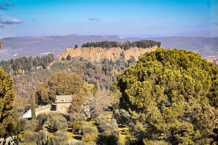 Affacciato in posizione panoramica sui boschi, gli ulivi e le colline incontaminate, di fronte ad Orvieto