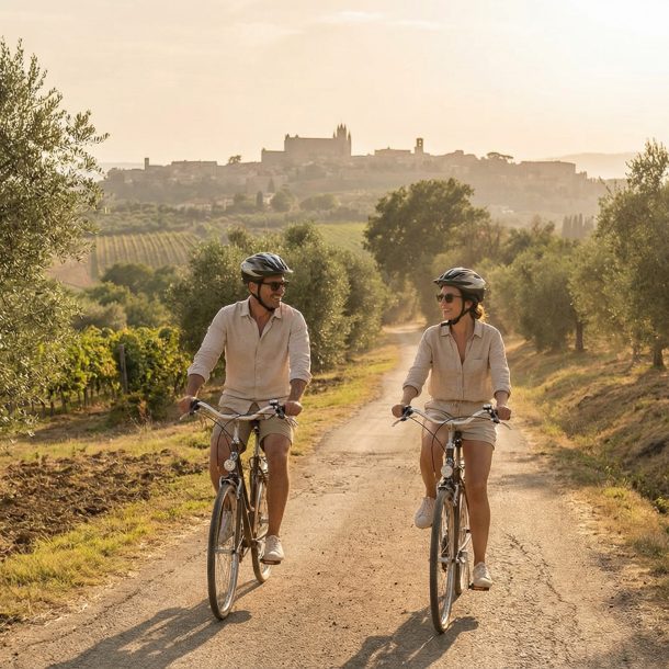 Bikes are left at the village entrance to explore Civita on foot, immersing yourself in a place