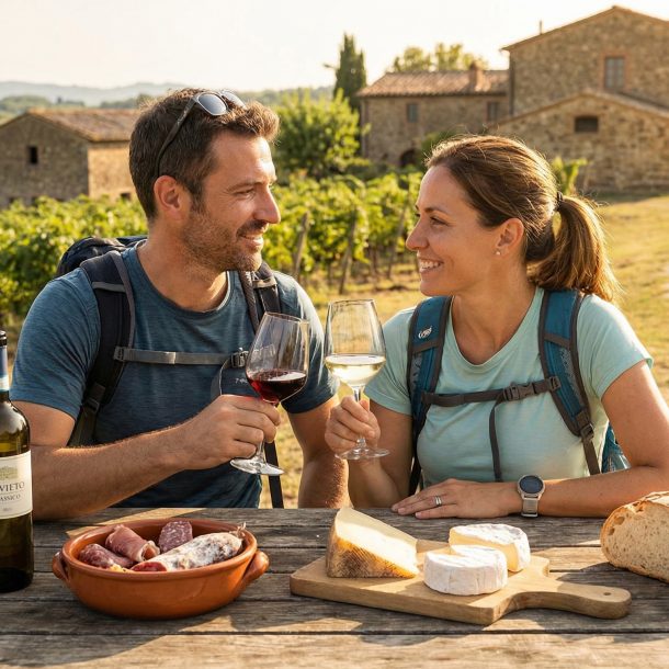 The visit moves through historic vineyards, cellars, and Etruscan caves, concluding with a guided tasting of three wines